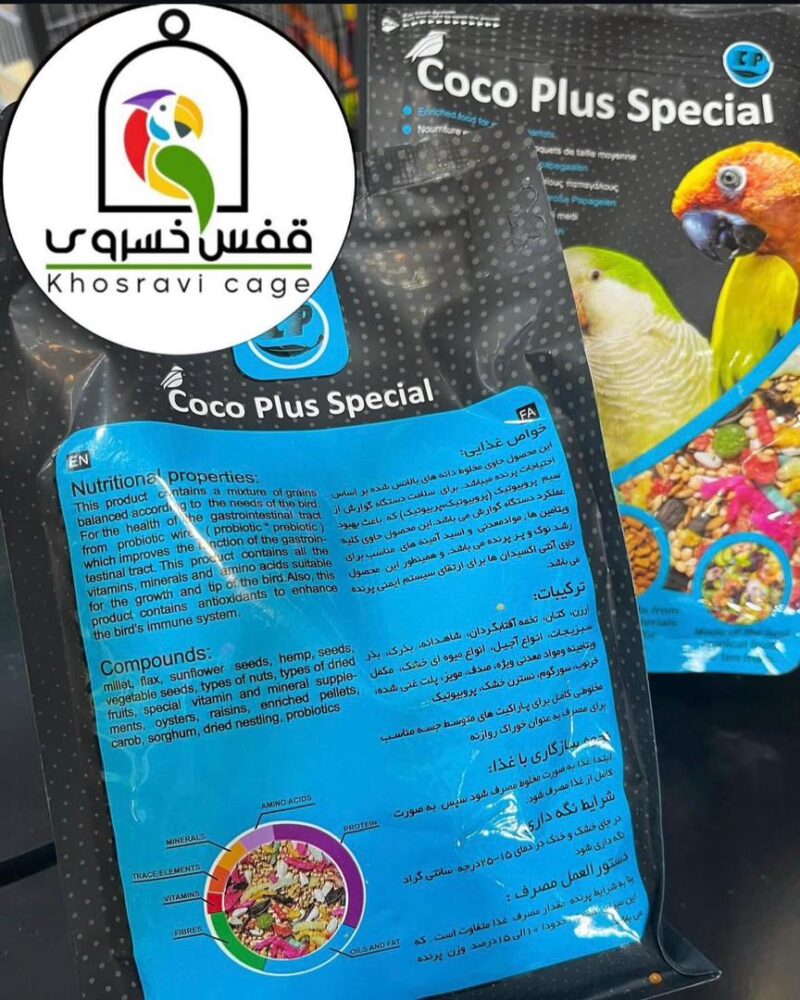 میکس دان کوکو پلاس اسپشیال مخصوص پرندگان متوسط جثه ترکیبی فوق‌العاده غنی و متعادل است که نیازهای پرندگان متوسط جثه را به‌صورت روزانه تأمین کرده و سلامت، انرژی و زیبایی پرهای آن‌ها را تضمین می‌کند.